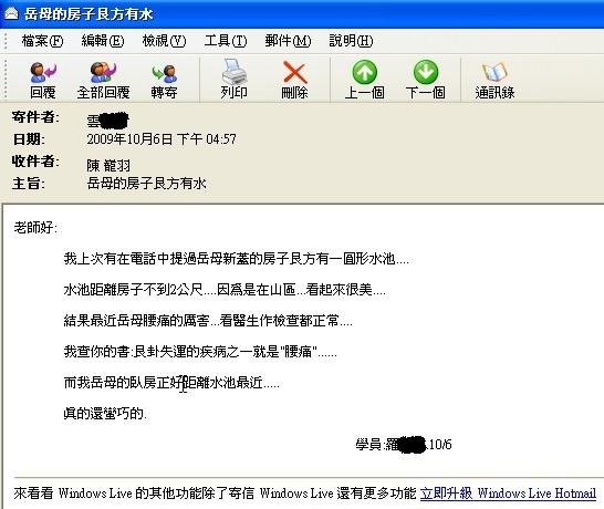 我上次有在電話中提過岳母新蓋的房子艮方有一圓形水池....