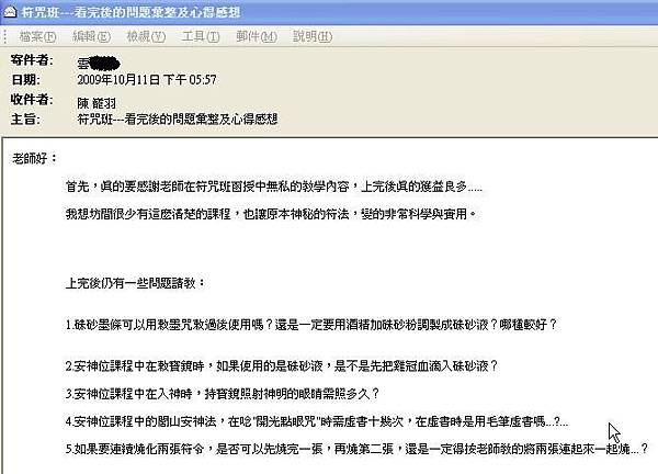 首先,真的要感謝老師在符咒班函授中無私的教學內容,上完後真的獲益良多.....