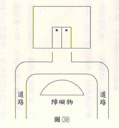 (一)定義:凡門前有障礙物,使門前之路分叉為二者,常見於醫院、公家機關。(見圖30)