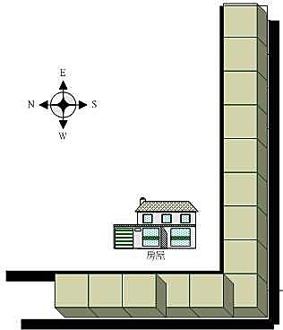 曲尺城垣密封封:城垣密封也是條件之一,因為如果城垣無法密封,則坤氣會穿過城垣,侵入住宅。