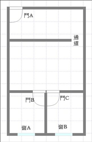如圖,門A、窗A、窗B為外氣;門B、門C及通道為內氣。
